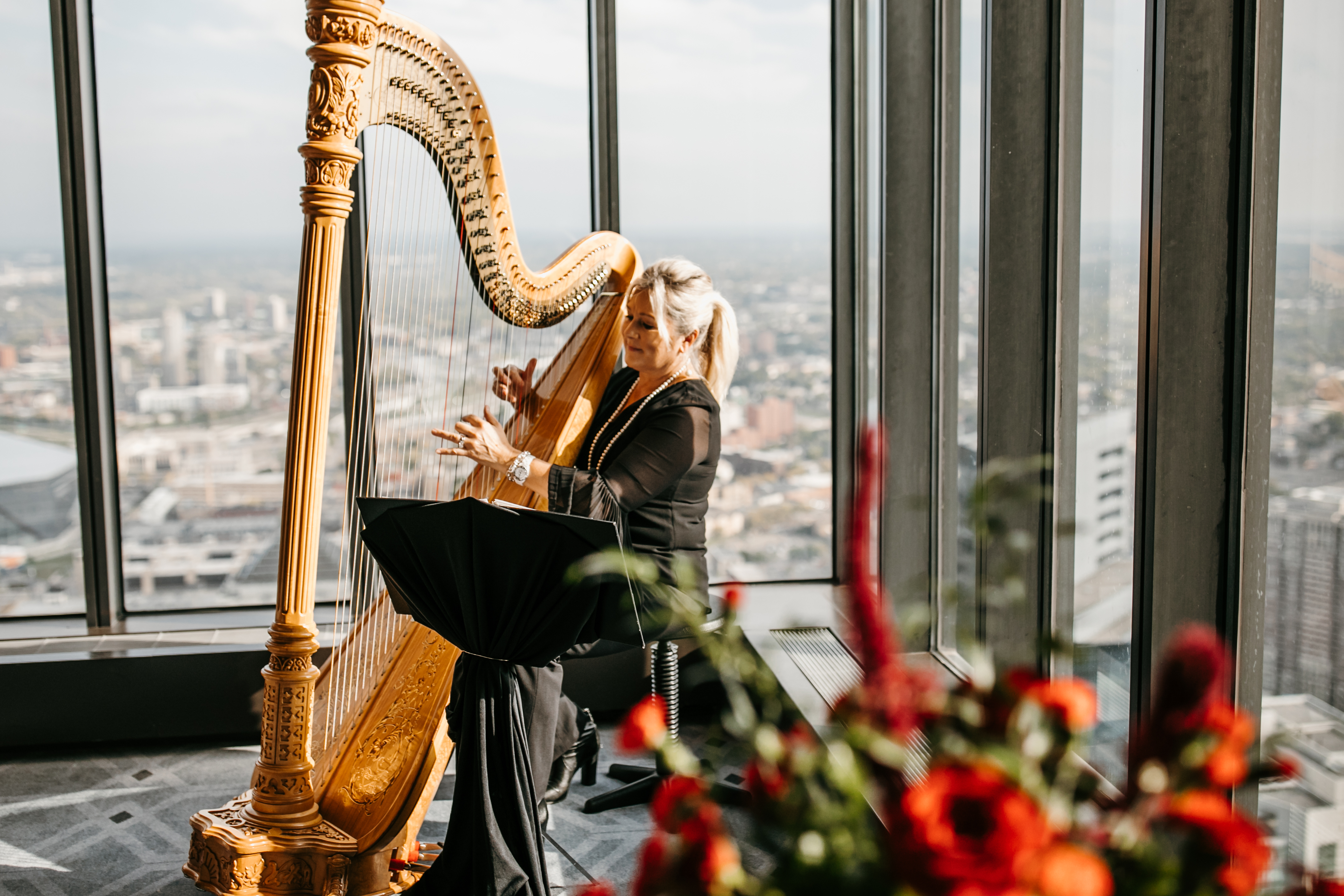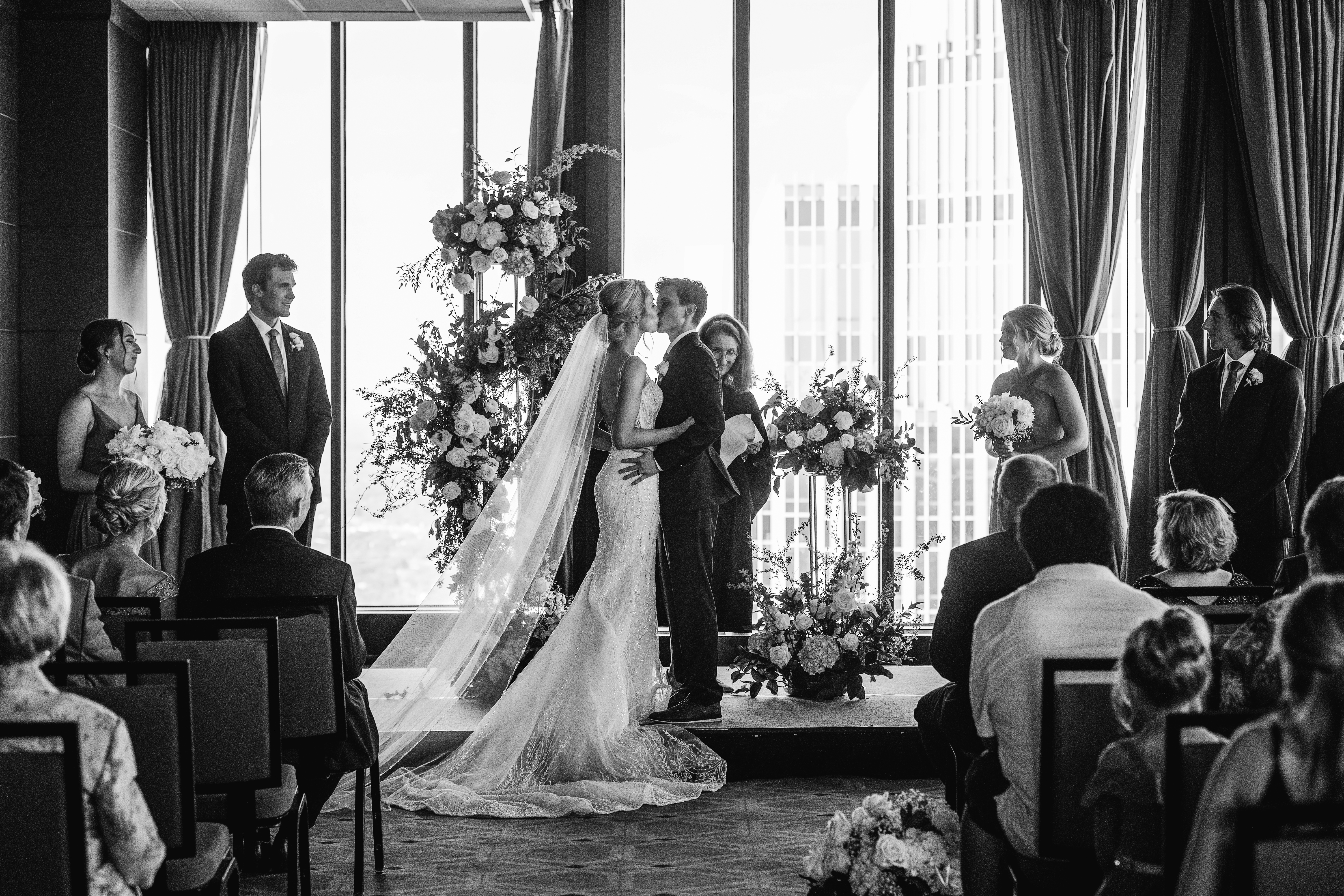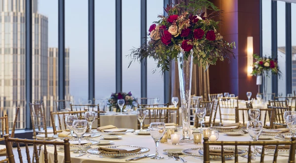 At Windows at Marquette, discover a wedding venue that is as unique as your love. Our ballroom has transformed the 50th floor of The Marquette Hotel, located at IDS Tower, into an elegantly sophisticated space with floor-to-ceiling windows overlooking downtown Minneapolis.